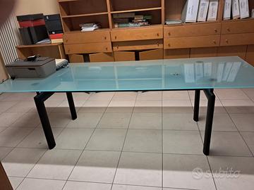 Tavolo con struttura metallica e piano in cristallo temperato satinato. Idoneo come tavolo riunioni/tavolo pranzo. Dimensioni 90x240xh72. RITIRO IN SEDE
