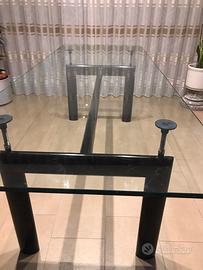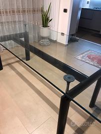L’idea di base del tavolo LC6 presentato nel 1929 al Salon D’Automne, risiede nella distinzione tra l’elemento portante e quello portato ovvero tra il basamento e il piano.L’autonomia delle due parti è evidenziata da quattro sostegni intermedi che fungono sia da regolatori di livello che da distanziatori tra la consistenza del supporto e le linee esili del piano.In particolare,il basamento fu disegnato nel 1928 facendo riferimento ai profili ovoidali impiegati nel settore aeronautico per separare le ali dai biplani.Questo articolo si presenta in ottime condizioni di conservazione salvo qualche difetto legato all’uso del tempo(due graffiature sul piano), firmato e numerato sulla traversa interna drl supporto.Ritiro sul posto.