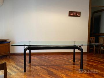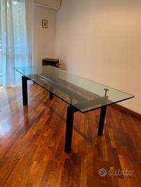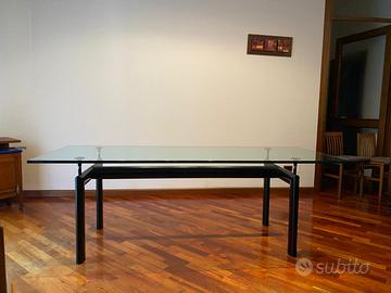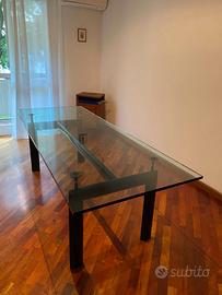 Vendo tavolo originale Le Corbusier acquistato nel 1991 e conservato in ambiente domestico in ottimo stato. Dettagli: Struttura in acciaio verniciato nero, originale, stabile e in ottime condizioni. Piano in vetro temperato trasparente. Misure del piano in vetro: 225 x 85 cm. Trasporto ed imballaggio a carico dell’acquirente.