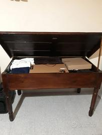 tavolo in legno scuro restaurato , usato solo come contenitore come in foto,in buone condizioni. No spedizione, ritiro a spese dell'acquirente.