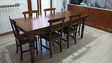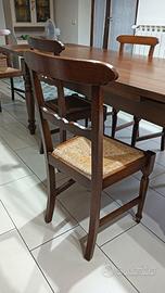 Tavolo in legno lungo 2 metri allungabile a 3 metri. La struttura in legno massello, il piano in foglia di noce. Numero 6 sedie in legno massello e paglia. Belle rifiniture, tutto in ottime condizioni. Prezzo trattabile. Le sedie possono essere vendute separatamente