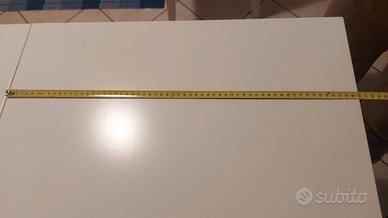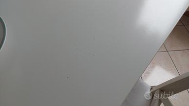 Causa cambio arredamento, Vendo tavolo bianco allungabile. Misura da chiuso 155 centimetri di lunghezza, 87 centimetri di larghezza e un'altezza complessiva di 74 centimetri. Possibilità di allunga con lunghezza complessiva di 215 centimetri. Struttura in buono stato,solida e resistente, il piano presenta invece segni di usura e piccoli tagli. Resto disponibile per ulteriori foto dettagliate. Non spedisco . Tenendo conto delle condizioni il prezzo richiesto è di 80 euro. Il tavolo ha già le gambe smontate per un più facile trasporto.