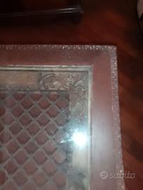 Tavolo antico di legno con vetro sopra e sotto ferro battuto ricamato ...fiori in legno decorato .....legno colore scuro antico bellissimo elegante altezza 48cm lunghezza 1.20 larghezza 62 cm bellissimo zona Roma