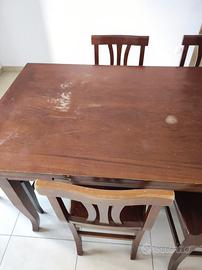 Tavolo legno arte povera, allungabile, e 5 sedie