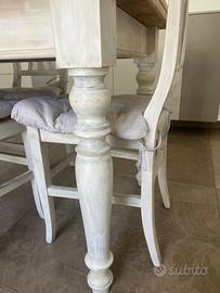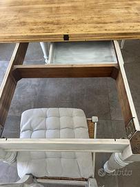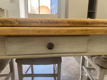 Tavolo in arte povera ristrutturato 2015 con possibilità di aprirlo a libro,acquisendo altri 4 posti comodi, più 4 sedie sempre in legno, abbinate al tavolo.