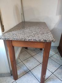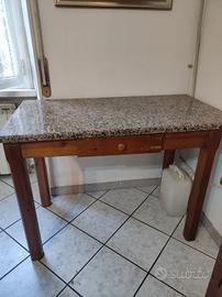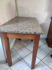 tavolo legno artigianale con lastra di granito misure h.83 L 66 lunghezza 120