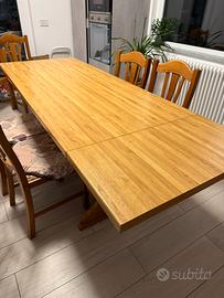 Vendo tavolo cm 140x80 con 2 prolunghe da cm 40 allungato cm 220 con struttura in legno e piano in laminato Con 6 sedie