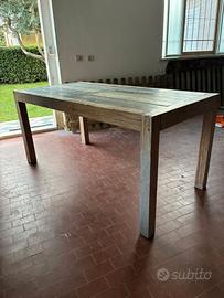 tavolo legno, 160x80. piano a doghe colore a fantasia. 8 disponibili.