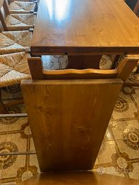 Vendo tavolo vero legno massello con prolunghe 240x90 con 10 sedie legno, trasporto a carico dell’acquirente