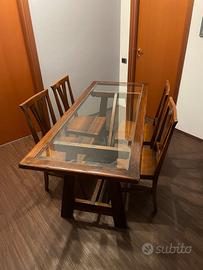 Vendo tavolo in legno con inserto centrale in cristallo, completo di 4 sedie abbinate.