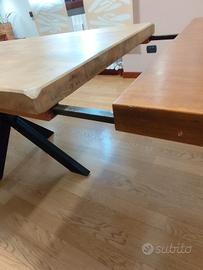 tavolo in legno massello con piedi in metallo, larghezza 78 cm lunghezza 180 cm + due allunghi ad incastro di 45 cm cadauno. ( lunghezza massima allungato di 270 cm).