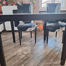 Tavolo. Misure chiuso 80x80 aperto estendibile 160x80 disponibile per altre foto. Ottime condizioni e perfettamente funzionante. Alcuni segni legati all' usura. Disponibile per altre foto al tavolo laddove voluto é possibile aggiungere 4 sedie al prezzo di 80 euro in più (20 euro a sedia). Le sedie sono perfettamente funzionanti sono dello stesso colore risultano avere le sedute da ripulire con smacchiatore per cibo specifici oppure coperte con semplici copri sedia.