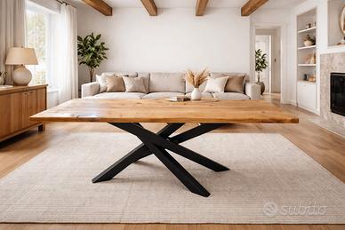 tavolo legno massello 200 per 80 altezza del piano 4 cm..gambe in ferro