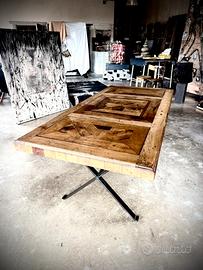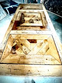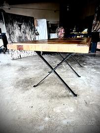 Tavolo legno intarsio con base ferro nero
