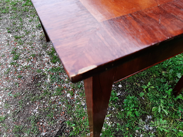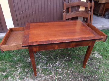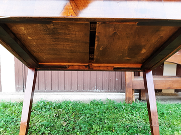 Tavolo legno lastronato anni '70 due cassetti