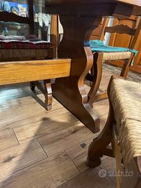 Tavolo molto robusto e stabile con base centrale importante. Sedie con seduta in paglia intrecciata. Ritiro a mano a carico acquirente disponibile anche la panca con prezzo aggiuntivo