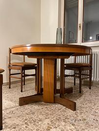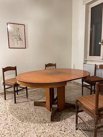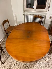 Vendo tavolo in legno realizzato su misura da artigiani in legno massello di diametro 113cm, allungato raggiunge i 180 cm