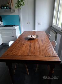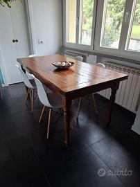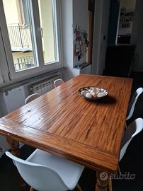 Tavolo in legno massello color miele. 180×90 cm. con due prolunghe raggiunge 260 cm