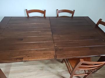 tavolo in legno massello 106 per 185 cm allungabile fino ad 220cm con 6 sedie in legno massello presenta piccole imperfezioni dovute all utilizzo