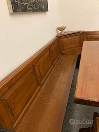 Vendo tavolo da pranzo in legno massello completo di panca ad angolo con vano contenitore e sedie, stile rustico / arte povera.