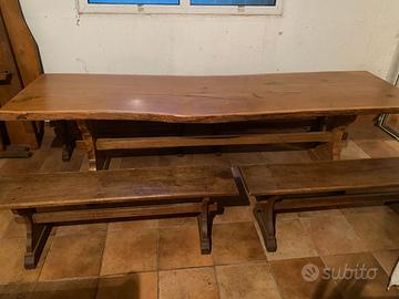 Tavolo Legno massello con panche e sedie