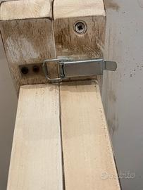 Tavolo / consolle 120 x 80 molto utile sia in corridoio , oppure scrittoio e tavolo da pranzo , in due semplici mosse ripiegando il piano superiore e accoppiando le gambe e il gioco e’ fatto . Fatto fare su misura da un artigiano svendo per cambio abitazione. Colore avorio decape’ .