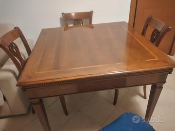 tavolo in legno massello alta qualità cm 110 x 110 allungabile compreso di 6 sedie con spalliera alta misure sedie h93 seduta 50 x 45