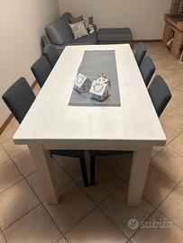 Tavolo in legno massello ,colore bianco opaco , effetto naturale + 2 prolunghe colore bianco