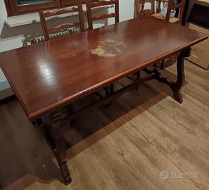 vendo tavolo , ha una macchia dovuta al calore al centro che non ho curato per inesperienza + 6 sedie che lo corredano. molto bello