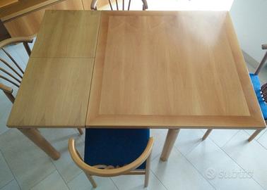 Svendo tavolo con 4 sedie, ottime condizioni, sempre tenuto tutto con cura. Legno massiccio (marca Fattore)! Svendo causa ristrutturazione locale. Tavolo: 103x103x75 cm altezza. Il tavolo può essere allungato come da foto. Sedie: 45x44x82 cm altezza schienale.