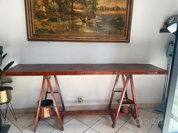 tavolo legno console con gambe fatte con cavalletti