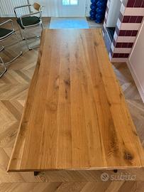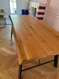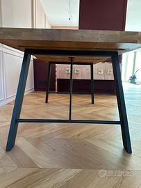 Vendo bellissimo tavolo legno massello 85x180 spessore 7cm. Robustissimo. Struttura gambe in ferro verniciato, adatto ad ambienti rustici ma anche industriali. Vendo inoltre, se lo si desidera anche 4 sedie in abbinata, struttura ferro verniciato nero con seduta imbottita.