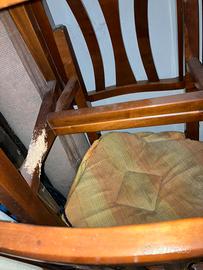Tavolo in legno di ciliegio, 150x90cm, con 4 sedie. Ottime condizioni ad eccezione di 2 sedie che hanno i pioli inferiori rovinati (vedi ultima foto). Gambe tavolo smomtabili x facile trasporto. Vendo causa inutilizzo.