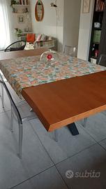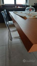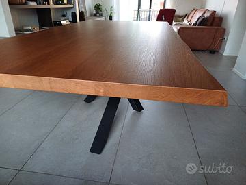 Tavolo in legno, originale Riflessi Shangai, dimensioni: 120x240 cm, spessore del piano in legno 5 cm. Gambe in metallo. Piccolo difetto in un piedino regolabile che non gira bene, con un piccolo spessore sotto al piedino la stabilità è perfetta.