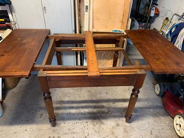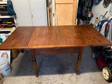 Bellissimo tavolo in legno di inizio ‘900 con cassetto dimensioni 105 x 105, aperto misura 200, altezza 83cm