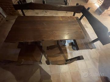 Tavolo legno rustico con sedie e panca