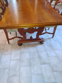 vendo tavolo di legno con sei sedie in buone condizioni. presenta segni del tempo misure 195 per 89 centimetri. trasporto a cura dell'acquirente.