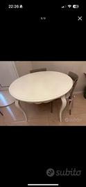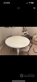 Tavolo tondo in vero legno bianco diametro 120 cm allungabile ovale fino a 160 cm. Praticamente nuovo senza nessuna imperfezione.