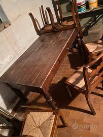 Tavolo tipo osteria di una volta, in legno “vero” compreso set 6 sedie in legno con seduta in paglia.
