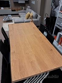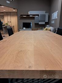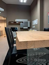 Tavolo Levity di Scavolini cm 210 x 100 con piano Legno Rovere scortecciato e basamento in vetro Extra Light. ( Escluso Trasporto e Montaggio )
