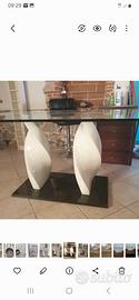 tavolo in cristallo con piccoli segni di usura sul vetro
