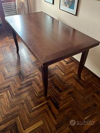 tavolo da pranzo color noce , leggermente danneggiato nella parte estraibile come da foto . misure : chiuso 1,61 mt, aperto 2,40 mt, larghezza 84,5 cm . tavolo smontabile.