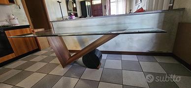 Tavolo vetro con basamento in marmo e legbo