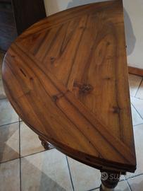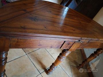 Tavolo Luigi XVI rotondo, ripiegabile a mezza luna, in legno no e massello misure: larghezza aperto 122 cm, larghezza da chiuso 62 cm, h 67 cm gambe tornite , gamba mobile a sostegno parte ribaltabile Ottimo stato ritiro a domicilio non disponibile per la spedizione