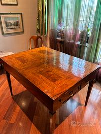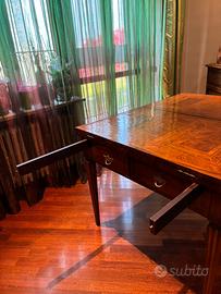 Tavolo stile Luigi XVI. Allungabile da due lati con 4 cassetti (2 per lato come d foto). Stato buono, necessita di piccoli interventi di resturo sugli intarsi. Prezzo trattabile.