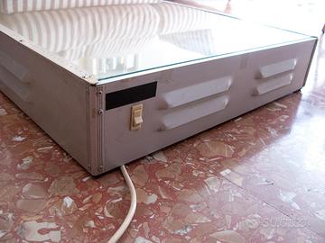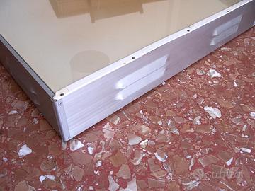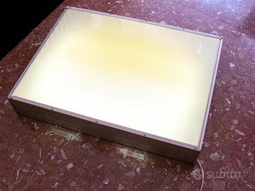 Tavolo luminoso 65x50 funzionante, con qualche segno di usura, ha circa quarant'anni. Struttura in alluminio, tubi neon funzionanti, vetro in buone condizioni ma andrebbe cambiato il foglio di plastica bianco posto al di sotto del vetro perchè si è ingiallito.
