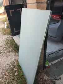 tavolo luminoso in alluminio e legno con 3 neon e due vetri, uno trasparente ed uno opalino