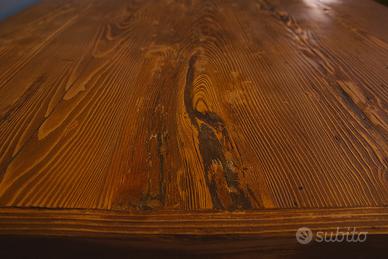 Splendido tavolo artigianale realizzato in abete spazzolato, risalente al 1970, dallo stile autenticamente vintage. Prodotto in Italia nel periodo 1970-1979, questo pezzo rappresenta un perfetto esempio di design rustico e senza tempo.