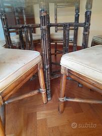 Tavolo bambu con ripiano cristallo diametro cm. 165 con nr. 8 sedie
