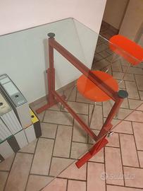 MAGIS,brut cavalletti in ghisa verniciati poliestere rosso con piano in vetro. Cavalletti 79x95 h regolabile 74/89/104 Piano in vetro 180x90